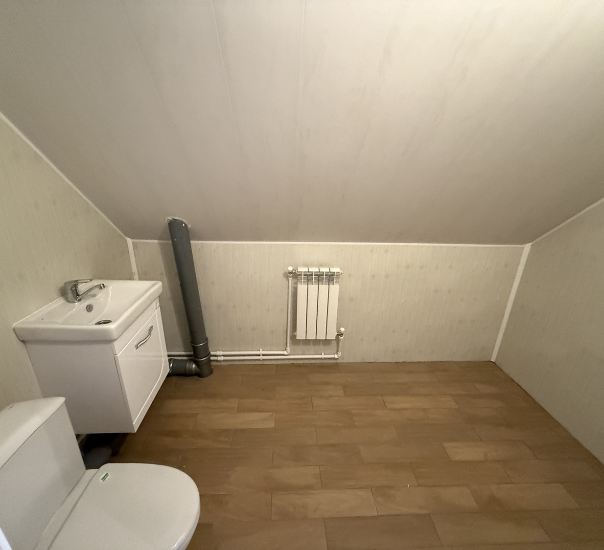 - 2-й этаж: 3 комнаты – 17/10/9 м2, холл-гостиная – 6 м2, санузел – 3 м2 (унитаз, раковина)