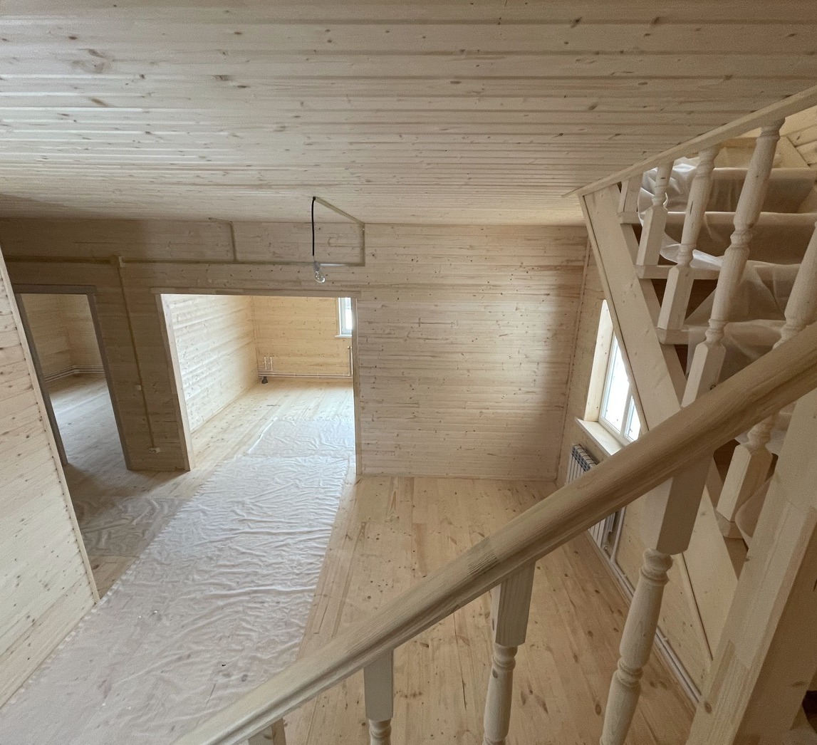 - Стены: первый этаж каркас/брус 150мм х150мм, второй этаж каркас с утеплением 150мм каменной ваты, перекрытия деревянные, потолок второго этажа утеплен 200мм каменной ваты