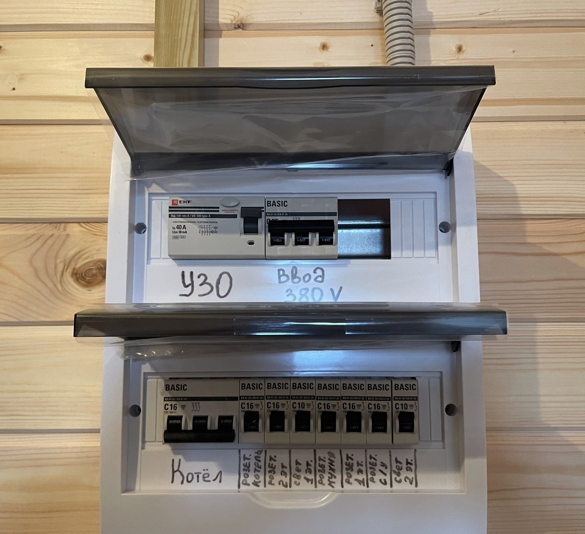 - Отопление – гибридный котел Теплодар с возможностью отапливать дом электричеством и твердым топливом (дрова, уголь, брикеты и прочее).